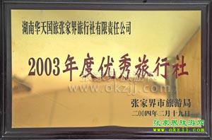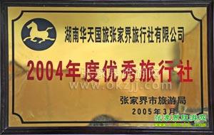 湖南省2004年度最佳旅行社 湖南省旅游局(2005.2)