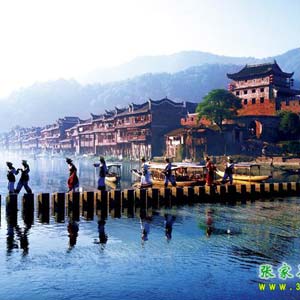 上 午: 游覽鳳凰古城九景(門票148元含):鳳凰古城風(fēng)景秀麗,歷史悠久,名勝古跡甚多。城內(nèi),古代城樓、明清古院風(fēng)采依然,古老樸實的沱江靜靜地流淌,在這里,你可以游覽到全國政協(xié)委員、鄉(xiāng)土文學(xué)之父沈從文的故居,民國總理熊希齡的故居、鳳凰四大城門之一的東門城樓、古城博物館、楊家祠堂、崇德堂、雅宏雅致,古色古香的虹橋藝術(shù)樓、被評價為“殿宇樓臺薈萃的建筑藝術(shù)大觀”的萬壽宮、聽著苗家姑娘別具特色的山歌,泛舟于清澈碧綠的沱江之中,沿途參觀兩岸已有百年歷史的土家吊腳樓。