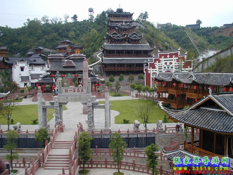 土家風(fēng)情園是一座古老的土家山寨,于1999年由民營企業(yè)家楊剛年先生投資修繕,土司城內(nèi)有醉人的土家欄門酒,神秘的土家祭祖活動、土家歷史文物展示、土家民俗演示、“九重天”“千人毛古斯”兩項世界吉尼斯之最,土家園林藝術(shù)等豐富多彩。進入土司城,首先看到土司城迎賓儀式,土家漢子迎賓鼓,吹牛角、放沖,土家姑娘攔門歌,敬攔門酒。