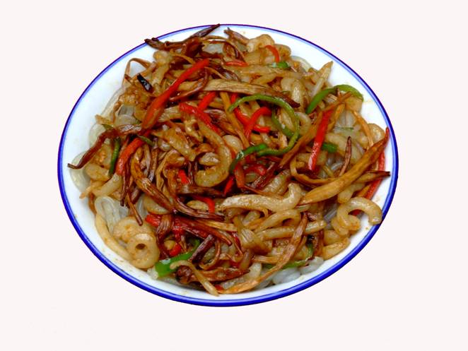 《張家界草帽面》。 這個名字的由來是因為老板常年戴著草帽賣面,臊子非常香,可以添加,面是他自己加工的據(jù)說是全手工的,老板人很古怪,每天只賣那么一點,以前更古怪,只有星期1、3、5的晚上9點才有賣,想吃他家的草帽面居然還得跟他打電話問他是否心情好,出不出來賣面?預約了才不會撲空。但是就因為這點神秘,所以他家的面有些神話色彩。在汽車站口百貨大樓東門對面的巷子口,一輛板車上面掛了一頂草帽,那就是了,不過每天下午1點左右就沒了,要吃啊,嘿嘿,您趕早!能不能吃的上,得看您造化咯!