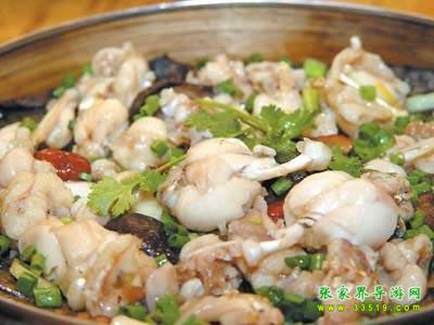 華南湍蛙,又名石蛙,當(dāng)?shù)厣矫袼追Q(chēng)“梆梆”,屬兩棲綱蛙科動(dòng)物,它是捕捉水蛇的能手。華南湍蛙平常生活在溪流石潭中,有時(shí)晚上上岸活動(dòng)。它與斑魚(yú)交配產(chǎn)子。華南湍蛙無(wú)論白天或黑夜,都能發(fā)出“梆梆”的叫聲,故俗名“梆梆”。華南湍蛙的肉十分細(xì)嫩鮮美,尤其燒湯,比雞湯還香甜。它營(yíng)養(yǎng)豐富,是名貴食品之一,也是待客的上品。