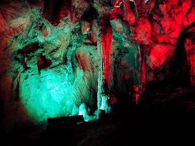 全只有一個裂縫狀的入口,由三組穴和18個“廳堂”組成,呈不對稱的樹枝狀展開,累計長達1870米,域總面積為84150平方米。內通道曲折幽奇,怪石叢生。入約300米,環(huán)顧四周, 好似“山窮水復疑無路”,而仔細探尋,上方竟有尺許小,其圓如鏡,只容鉆入,鉆入之后,則是“柳暗花明又一村”,入大天,令人咋舌,三號內,那只聞其聲、難見其形的地下飛泉瀑布,聲若虎嘯雷鳴,使人毛骨悚然。行至深處,深潭擋路,一座又窄又滑的天生“小橋”飛架其上,令人望而卻步。二號后段則是一個福地天。深處的“天窗”猶如一彎朗月高懸,景觀奇異,叫人更加流連忘返。錫巖仙的石筍、石林、石柱、石幔琳瑯滿目,千姿百態(tài),鬼斧神工,維紗維肖。“珍珠傘”勝景,美無倫比。