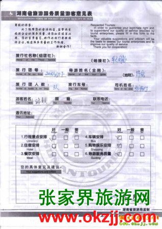 2010年5月4日許先生一行3位旅游質(zhì)量反饋