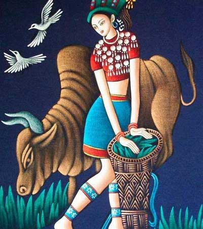 ■土家粘貼畫 介紹: 系采用樹根、樹枝、樹葉、樹皮以及砂石、草苔、布片等作為原料粘貼成人物、風景、動物、花草和各種不同內(nèi)容的畫幅。