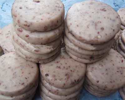 糯米洗凈,泡上一個對時后,濾干后用甑子蒸熟。然后把糯米飯盛在粑槽內(nèi)用錘打爛,再捏成大小均勻的坨子,壓薄成形,這便是糍粑。待成形的粑陰干后,泡在壇子里,十天半月?lián)Q一次水。這樣,可以放到端午節(jié),經(jīng)久不壞。 ■社飯